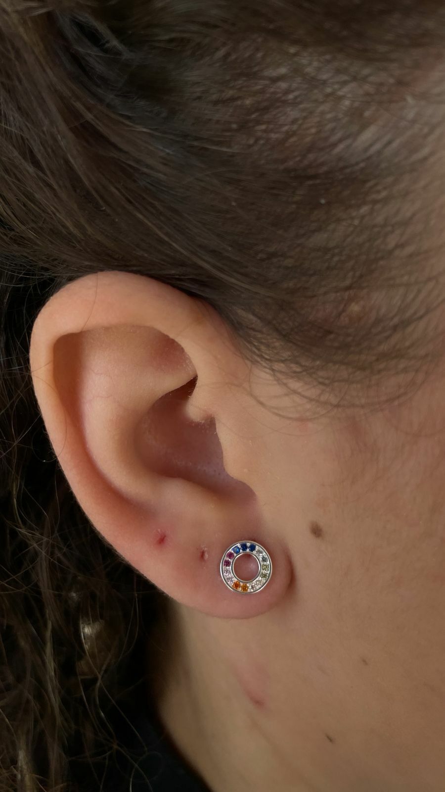 BRINCO LISO CIRCULO COLORIDO - PRATA 925