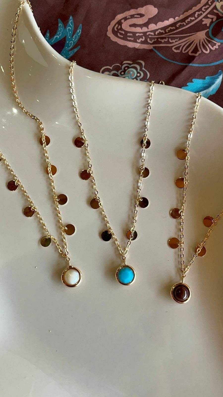 COLAR PEDRA RESINADA COM TRÊS PONTINHOS TURQUESA
