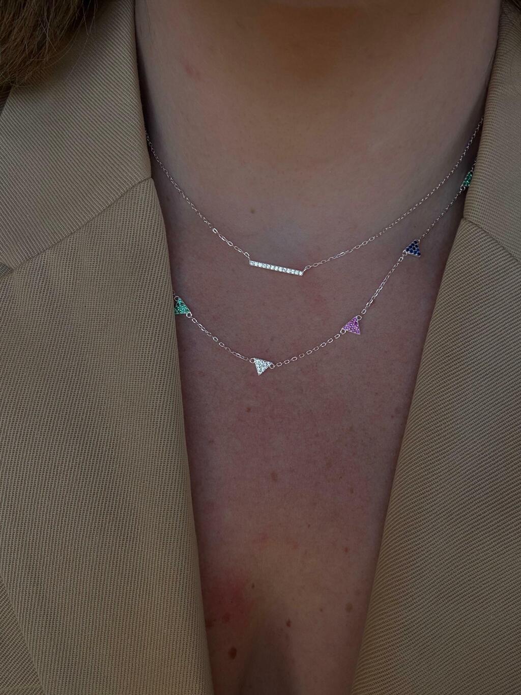 COLAR DUPLO TRIÂNGULOS PRATA 925