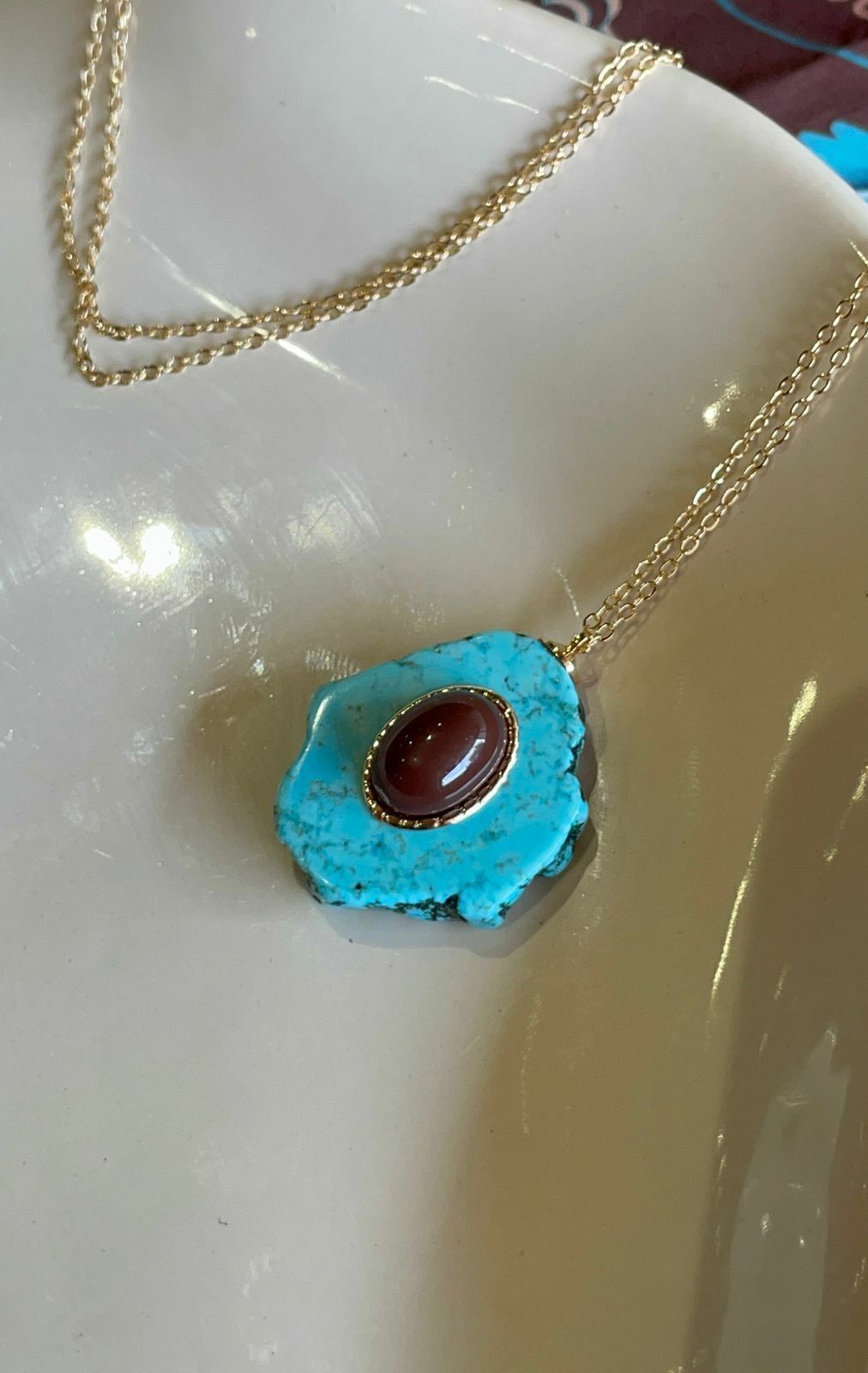 COLAR PEDRA TURQUESA FORMA DE CORAÇÃO