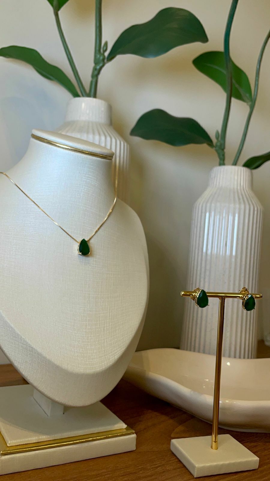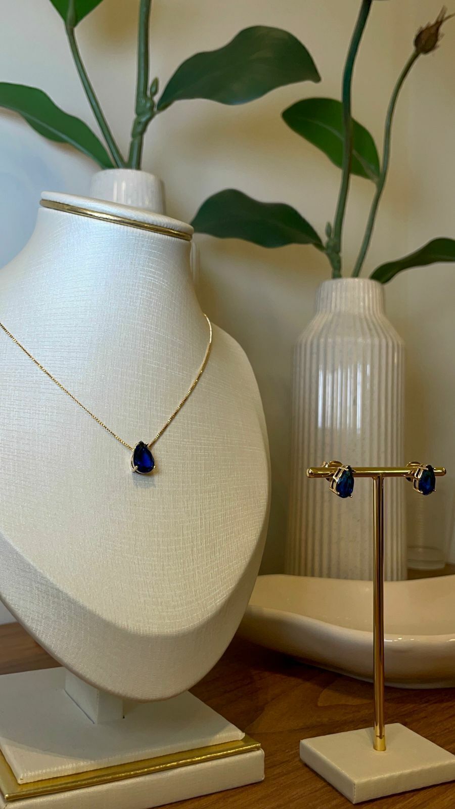 COLAR PEDRA RESINADA COM TRÊS PONTINHOS TURQUESA
