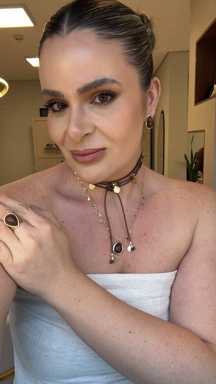 COLAR PEDRA RESINADA COM TRÊS PONTINHOS TURQUESA